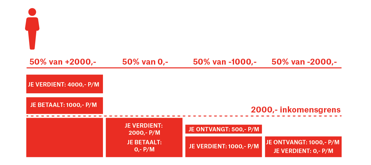 Een andere optie is de negatieve inkomstenbelasting. In de jaren veertig bedacht door politicus en activist Juliet Rhys-Williams en in de jaren zestig gepopulariseerd door Milton Friedman. Het is een vorm van basisinkomen, alleen dan direct geïntegreerd in een belastingstelstel. Je stelt bijvoorbeeld een soort belastingvrije voet in op een inkomensgrens van 2000,- per maand. Daarboven is de belasting positief, dus moet je betalen, daaronder negatief, en ontvang je dus geld. Stel je gaat uit van een vlaktaks van 50% over het verschil met deze inkomensgrens. Als je geen inkomen hebt wordt de negatieve belasting over het verschil tussen nul en tweeduizend berekend, dus 50% over -2000,-, wat betekent dat je 1000,- krijgt. Een negatieve inkomstenbelasting elimineert het probleem van de armoedeval (of welfare trap) dat het huidige belasting- en toeslagenstelsel creëert.
