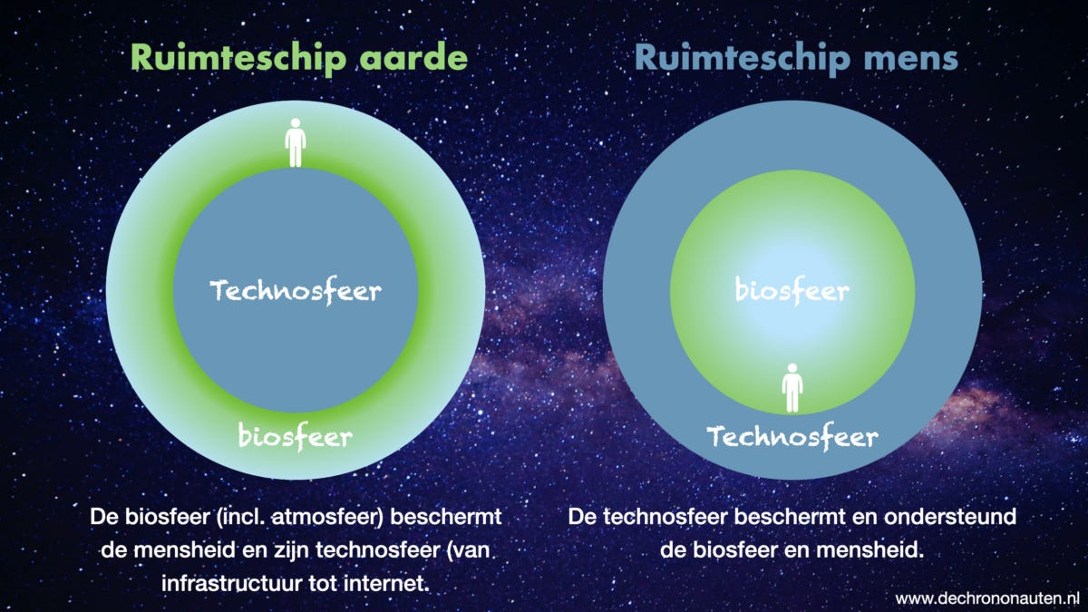 In essentie zal het leven in de ruimte neerkomen op een soort omdraaiing van biosfeer en technosfeer. Waar op aarde de biosfeer de mensheid en haar technosfeer ondersteunt, zijn de rollen in de ruimte omgekeerd: de technosfeer moet de biosfeer beschermen die de mens nodig heeft om te kunnen overleven.