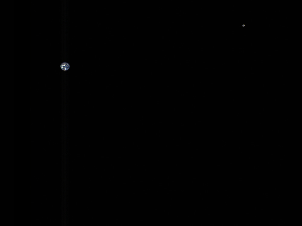 Deze foto, waar de Maan en de aarde samen op staan, is genomen door de Osiris Rex ruimtesonde vanaf zo'n 1,2 miljoen kilometer afstand.