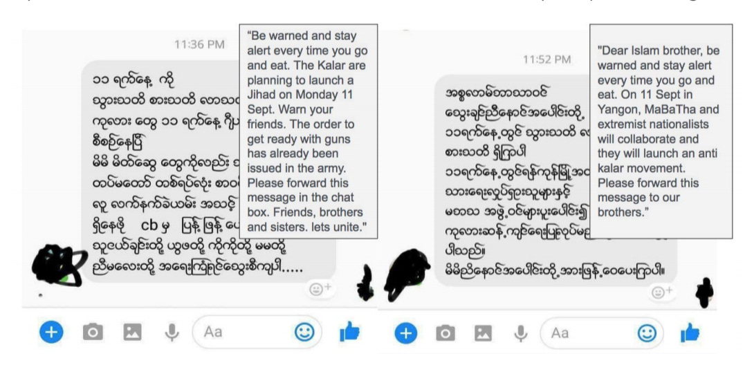 Een vaak genoemd voorbeeld van hoe het mis kan gaan in een publieke sfeer die wordt gecontroleerd door een platform is de genocide op de Rohingya, in Myanmar. Deze vond plaats nadat Facebook – dat in Myanmar synoniem staat voor het World Wide Web, zo dominant is het – werd overspoeld door nepnieuws en clickbait. In het beeld hierboven zie je hoe bevolkingsgroepen tegen elkaar op werden gezet via berichten die zich viraal verspreidde via Facebook Messenger (Bron: Techcrunch). Lees op MIT Technology Review hoe Facebook zelfs de makers van deze valse informatie geld betaalde.