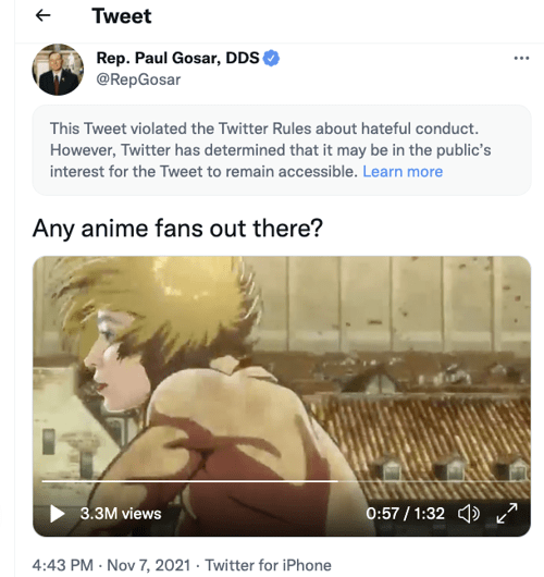 Het sentiment van maatschappelijke marginalisering en de daaruit voortkomende strategie van provocatie heeft, zoals we nu allemaal weten, ook de politiek bereikt. Afgelopen week pleitte Alexandria Ocasio-Cortez bijvoorbeeld voor meer fatsoen in het Amerikaanse House of Representatives, nadat de Republikeinse afgevaardigde Gosar een animatie had gemaakt waarin Ocasio-Cortez werd vermoord. Of lees hier over hoe de Nederlandse FVD-volksvertegenwoordiger Pepijn van Houwelingen vorige week een collega van D66 uitmaakte voor ‘globalist’ en vervolgens zei: ‘Uw tijd komt nog wel, er komen tribunalen’.