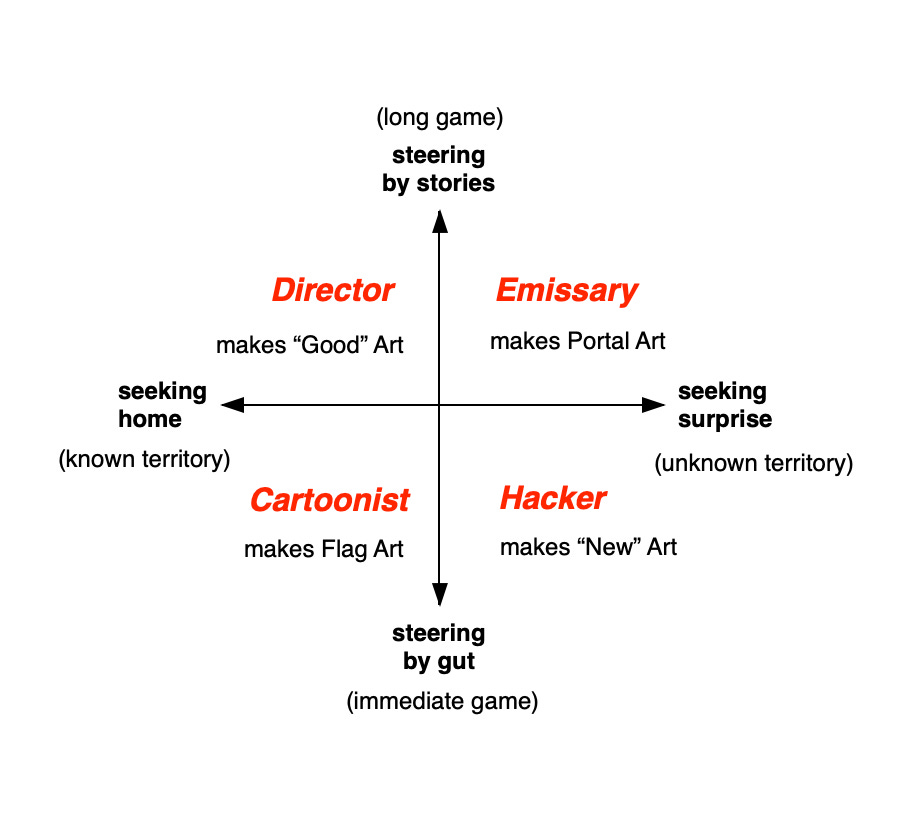 'The Emissary is almost never consciously called upon for its artistic capacity. It’s as if the Emissary is the demon that we reserve (and exhaust) for the iterated game of living life itself – dating, maintaining friendships, evolving a career, keeping up the , home, raising pets and kids, maintaining social media accounts. But what if the emissary could be integrated into the artistic process? What if its concerns for iterative growth and transformation were an artistic consideration? What options would open up?’