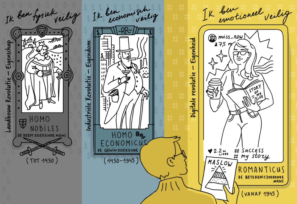 Het mens- en wereldbeeld van de Homo Economicus zal in de toekomst volgens ons steeds meer ondergeschikt raken aan de Homo Romanticus, de betekeniszoekende mens. Eigendom als belangrijkste meetlat voor sociale status zal plaatsmaken voor eigenheid – wat, zo beseffen we nu, eigenlijk neerkomt op een diep vertrouwen in jezelf, in de mensen om je heen en de goedhartigheid van het universum. Diegene met een diep intrinsiek vertrouwen (of gehechtheid) kan ongegeneerd zichzelf zijn, wat zich weer zal vertalen naar fysiek en economische gezondheid.