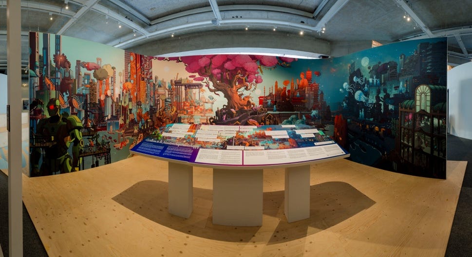 En mochten jullie toevallig in Rotterdam zijn en een paar uurtjes over hebben, bezoek dan het Maritiem Museum. Onze bijdrage aan de vaste tentoonstelling Bestemming Havenstad loopt nog tot de zomer. We hebben een mythisch panorama van de toekomst van havenwerk gemaakt. Maar ook los van onze bijdrage is het Maritiem Museum zeer de moeite waard.