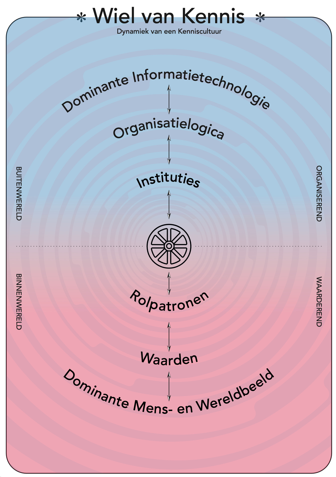 Informatietechnologie organiseert onze samenleving van buiten naar binnen in onderling verenigbare sociale en maatschappelijke instituties. Ons mens- en wereldbeeld laadt deze instituties, van binnen naar buiten, met gedeelde waarden. Op deze manier worden kennisculturen technologisch en epistemologisch geharmoniseerd.