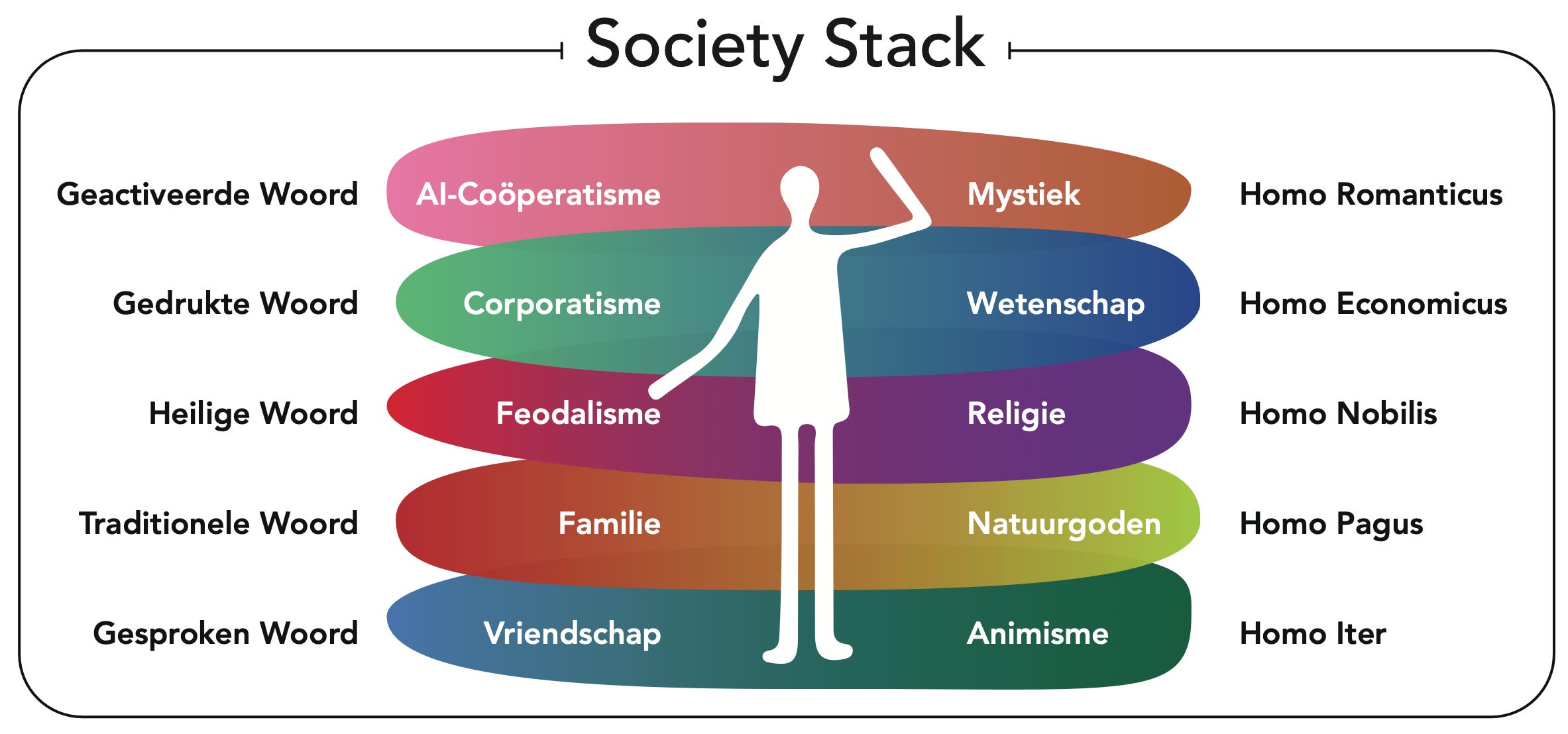 Op deze manier krijg je een soort society stack, zie het schema hieronder.