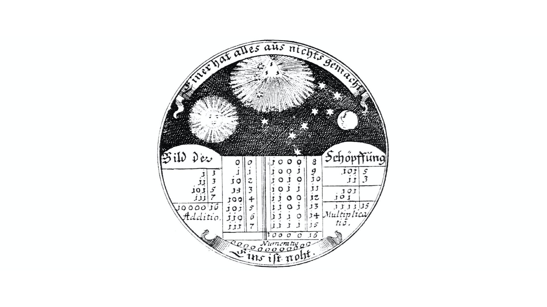 In 01694 ontdekte Leibniz dat je met slechts twee tekens, een 0 en een 1, alles kan berekenen. Elke formule, elk systeem – ja zelfs de werkelijkheid zelf zou volgens Leibniz berekend en gesimuleerd kunnen worden. Met deze realisatie vond Leibniz de binaire calculus uit. Een uitvinding waardoor hij vandaag de dag bekend staat als de geestelijke vader van de computer.