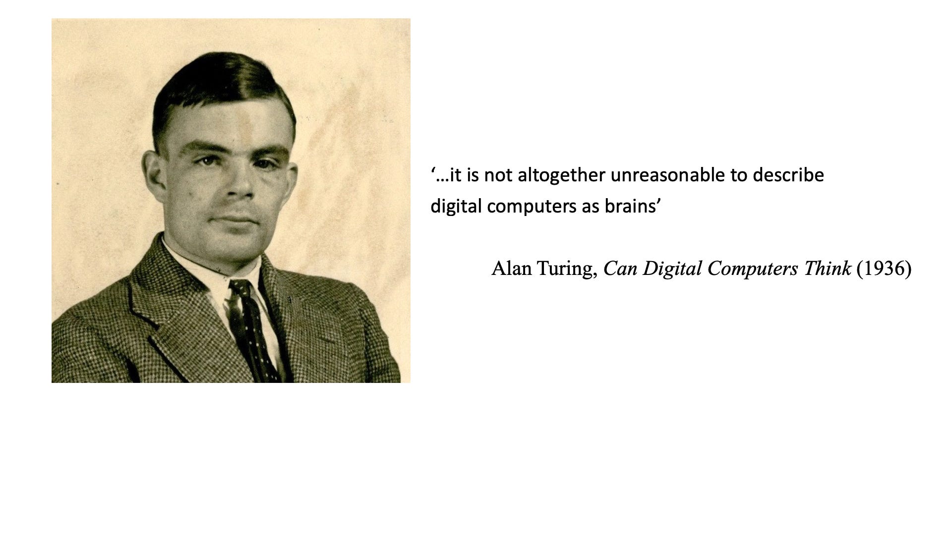 Inclusief de mens zelf, volgens Turing. In zijn essay ‘Can Digital Computers Think’ schreef Turing: ‘That it is not altogether unreasonable to describe digital computers as brains.’