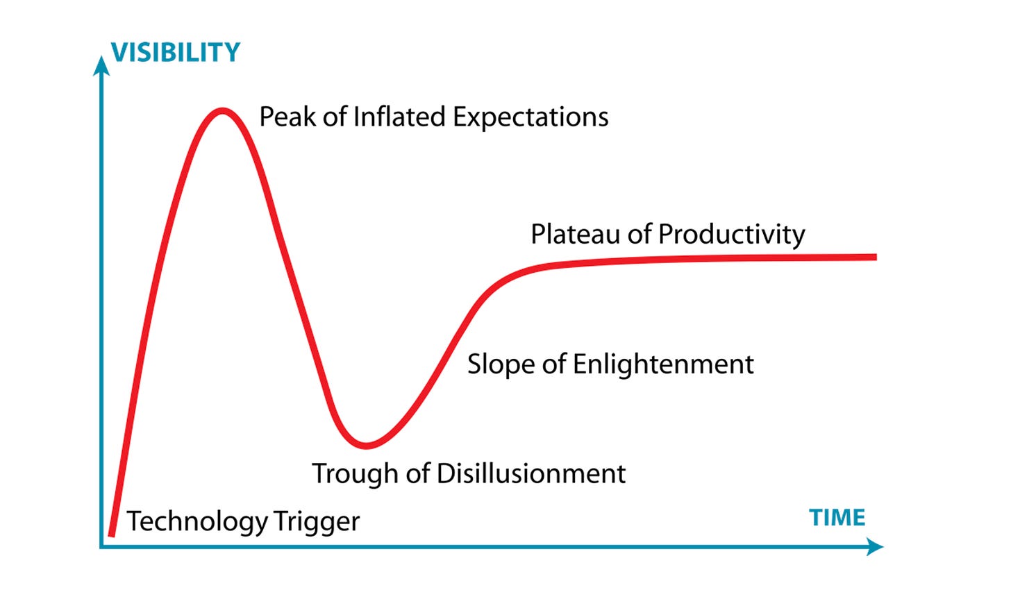 Wanneer je nadenkt over de toekomst komen er regelmatig hypes op je af die je vervolgens op waarde moet zien in te schatten. Voorzichtigheid is dan geboden. Vooral met voorspellende tijdslijnen. Wij denken dan vaak even aan de oude futurologenwijsheid van Roy Amara: