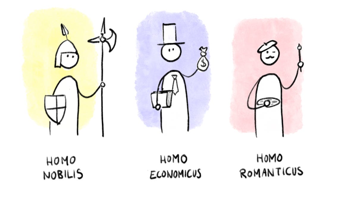 De andere twee archetypen zijn de Homo Nobilis, het archetype dat dominant was in de Middeleeuwen, en de Homo Economicus, het moderne archetype dat nu langzaam terrein verliest.