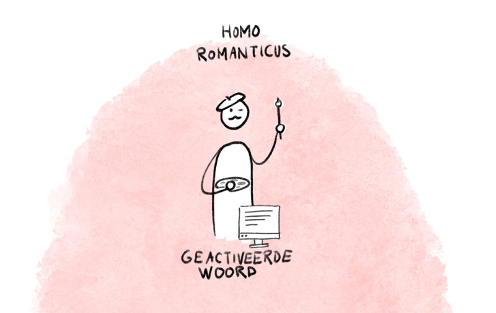 Toen de wereld rijker werd en meer belezen, maakte, ergens in de 18de eeuw, de Homo Romanticus zijn opwachting. Dat gebeurde ongeveer gelijk met de eerste theoretische verkenningen van de binaire computer, het geactiveerde woord. De Homo Romanticus betwijfelde of het objectieve en wetenschappelijke mens- en wereldbeeld van de Homo Economicus volstond.