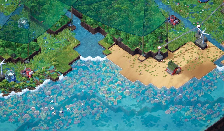 Dat neemt niet weg dat de kracht van de game juist de emotionele en esthetische dimensie van het natuurherstel is, waar andere games van natuurherstel en duurzaamheid eerder een managementprobleem maken dat dienend is aan menselijke belangen.