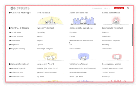 Twee weken geleden hebben we ons denkraam over de drie kennistradities op een overzichtelijke poster gezet, deze week voegen we er een interactieve dimensie aan toen: een online dashboard van ons World Tree Model (WTM). Het is een soort taxonomie van de drie kennistradities van de Homo Nobilis, Economicus en Romanticus, geordend in een matrix die op verschillende manieren te lezen valt.